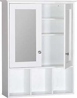 MUPATER バスルーム壁キャビネット 薬キャビネットストレージオーガナイザー 2ドアとミラー付き 調節可能な棚とオープンストレージキューブ コテージコレクション ホワイト
