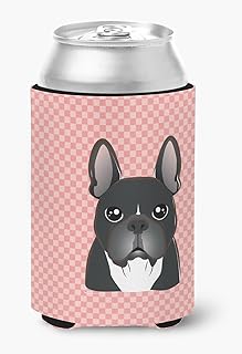 Carolines Treasures BB1227CC Checkerboard Pink French Bulldog Can Or Bottle Hugger, 12 Oz.