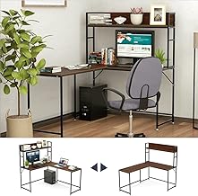 DOMY HOME L字デスク パソコンデスク デスク L字型 オフィスデスク PCデスク ワークデスク オフィスデスク コーナーデスク (ウォルナット, 140*140*74cm)