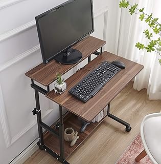 パソコンデスク PCデスク 昇降式テーブル オフィスデスク ワークデスク パソコン机 学習デスク 幅75*cm 棚付デスク 収納棚 キャスター付 (ウォルナット)