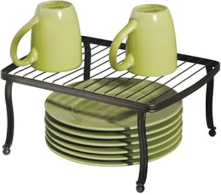 mDesign 装飾メタルワイヤー キッチンパントリー カウンタートップオーガナイザー 収納棚 盛り上がったキャビネットラック 食品 皿 皿 ボウル マグ グラス用 ブロンズ