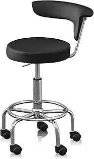 SUPER DEAL スツール 丸椅子 キャスター 診察椅子 背もたれ フットレスト付き 昇降 回転 丸型 カウンターチェア PUレザー おしゃれ 軽量 ワークバーカウンター 理髪店 飲食店 美容院 病院 診療用 (ブラック)