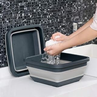 折りたたみ 洗面器 シリコン製 四角 ソフト湯おけ 抗菌 「 グレー 」コンパクト収納 省スペース コンパクト収納 洗濯 掃除 足浴 洗車 猫犬お風呂 旅行に持っ