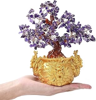 KALIFANO 天然アメジスト (225宝石数) チャクラクリスタルツリー ドラゴンベース - 盆栽風水 マネーツリー ポジティブなエネルギー、幸運と富 - 8インチ (家族経営/運営)