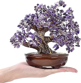 KALIFANO 天然アメジスト (360個の宝石数) チャクラクリスタルツリー - 盆栽風水 お金の木 正のエネルギー、幸運、富 - 8インチ