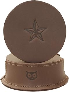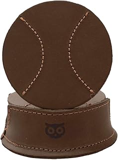 Hide & Drink 丈夫な厚手レザーベースボールコースター (6パック) ハンドメイド バーボンブラウン