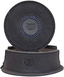 Hide & Drink、丈夫な厚いレザービニールレコードLPワックスキャンバスセットコースター(6枚パック)ハンドメイド::チャコールブラック