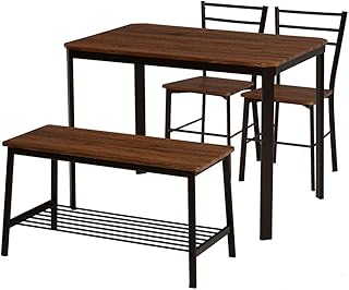 ダイニングセット ダイニング 4点セット テーブル チェア ベンチ スチール脚 木製 幅100cm 4人掛け 4人用 テーブル 食卓 長方形 北欧 おしゃれ シンプル ジャストサイズ カフェ コンパクト 新生活 (ブラウン)