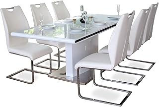 【設置代無料】 伸縮 ダイニングセット 7点 ホワイト ダイニングテーブルセット 白 伸長式 160 200 モダン おしゃれ ダイニングテーブル 7点セット 6人 6人掛け 鏡面 スチール 伸長 食卓セット