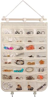 BB Brotrade 吊り下げジュエリーオーガナイザー 32個のクリアPVCポケット 壁ジュエリー収納 金属フック2個付き ジュエリー収納 ベージュ