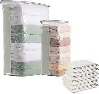 真空収納バッグ 8枚パック コンボ 座った圧縮空気 ポンプ不要 ダブルカラーファスナー 衣類 枕 タオル ブランケット ホワイト