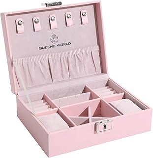 QUEENS WORLD ジュエリーボックス レディース ガールズ ジュエリーオーガナイザー 小さなロック可能なジュエリーケース イヤリング リング ネックレス ブレスレット 腕時計 ピンク
