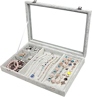 FYX 収納 ジュエリーボックス ジュエリーケース アクセサリーケース ディスプレイ コレクション ピアス 指輪 イヤリング ネックレス ブレスレット ベロア調 小物入れ (007)