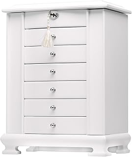 ローリング(Rowling) ジュエリーボックス アクセサリーケース 宝石箱 小物入れ 指輪 ネックレス ピアス ブローチ イヤリング 木製 アクセサリーボックス (ホワイト)