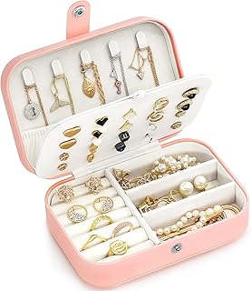ジュエリーボックス PUレザー 小型ポータブルトラベルケース 2層オーガナイザー ディスプレイストレージホルダーボックス リング、イヤリング、ネックレス、ブレスレット(ガールズピンク)