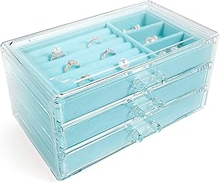 V-HANVER ジュエリーボックス レディース 3つの引き出し ベルベットジュエリーオーガナイザー イヤリング/バングル/ブレスレット/ネックレス/リング収納&ブルー