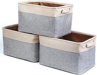 i BKGOO 収納バスケット 収納かご 3 個セット 衣類収納 小物入れかご 整理用バスケット おしゃれなインテリア雑貨 可愛い収納かご ファブリック綿麻製 車用収納 おもちゃ収納 高耐久性 引き出し おもちゃ収納 取っ手付き 折り畳み式 長方形白い-グレー36*26*20 cm