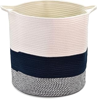 ZOODUS ランドリーバスケット 洗濯かご 収納バスケット 多機能 綿ロープ 整理用バスケット と色 - 実用的で丈夫なデザイン - 育児室、玩具入れにぴったり (L, Navy)