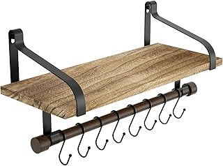 Love-KANKEI ウォールシェルフ ウォールラック 壁掛け棚 飾り棚 収納棚 天然木製 ネジ付き S字フック付属 調理器具 生活雑貨 整理整頓