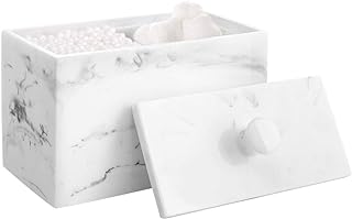 Luxspire 化粧綿収納ボックス コスメボックス 化粧綿入れ 樹脂製 蓋付き U型 防塵 ビューティーブレンダー クリーンパフボックス コスメケース コットンケース 北欧風 大理石柄 化粧綿収納 洗面台 化粧台 浴室用ボックス コットンケース メイクボックス White Marble