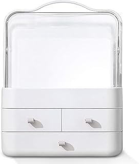 メイクボックス 化粧品 収納ボックス メイク 収納ケース コスメボックス 防水 防塵 大容量 蓋付き 化粧品収納ラック 透明化粧品ケース 強い耐久性 整理簡単 引き出し小物/化粧品入れ おしゃれ 透明アクリル 化粧品入れ コスメ収納 アクリルケース レディース 女子へのギフト 母の日 JANRI (ホワイト)