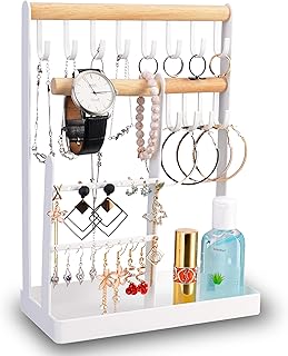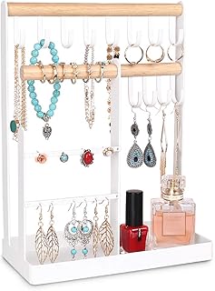 Baruc アクセサリースタンド ジュエリー 大容量 ジュエリーディスプレイスタンド 収納力 12フック 18穴 ジュエリー収納ホルダー ネックレス イヤリング ブレスレット 腕時計 収納ラック 天然木製