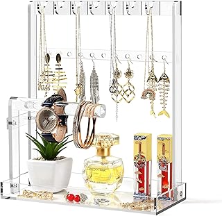 HHXRISE ジュエリー収納 大容量 収納力 7フック 11穴 鍵置き アクセサリースタンド ネックレス収納ホルダー 指輪・イヤリング・ブレスレット・バングル・腕時計 収納ラック アクリルディスプレイスタンド