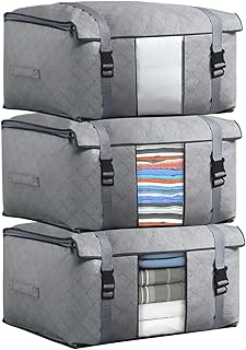 DIMJ 布団 収納袋 圧縮布団袋 衣類収納 衣装ケース 収納ケース 持ち手 クリア窓付 ベルト付属 ファスナー式 毛布 寝具 羽毛布団 分類収納 不織布 省スペース 押入れ 大容量 防虫防カビ除湿 抗菌防臭 3枚組 グレー