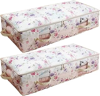 vanessasa_JPベッド下収納バッグ 2枚セット ベッド下収納ケース ベッド下収納ボックス 衣装ケース 収納ケース 布団袋 スペース活用 折り畳み 透明窓付き 湿気防止 持ち手 仕切り 分類収納 毛布 羽毛布団 衣類 ベッド下 クローゼット収納 不織布 サイズ100*50*18cm (グレー B)