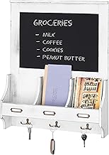 MyGift ビンテージ ホワイトウッド 壁掛けメールオーガナイザー 黒板とキーフック付き