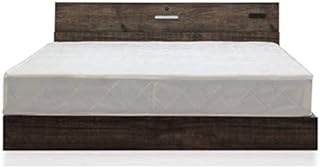 セミダブルベッド マットレス付 セミダブルベット マットレスセット ボンネルコイルマットレス フロアベッド 頑丈すのこベッド ヴィンテージ ビンテージ アンティーク調 コンセント付き 棚付き 照明付き LEDライト スマホスタンド 木目調 ブラウン色 アイボリー色 おしゃれ (ブラウン)