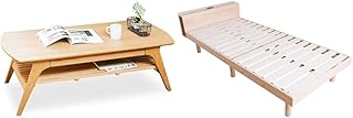 アイリスプラザ テーブル ローテーブル 引き出し収納付き 棚付き 幅120×奥行60×高さ40㎝ ナチュラル DLT-1200 & ベッド すのこ 棚付き コンセント付き 2口 3段階 高さ調整 フレーム ナチュラル シングル TKSB-S【セット買い】