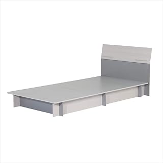 棚・コンセント付き フロアベッド (シングルサイズ) スタンダードなマットレス付き デザインヘッドボード (フレームカラー:オークホワイト/マットレスカラー:ホワイト)