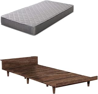 JKプラン ポケットコイル マットレス 圧縮 梱包 すのこベッド シングル ベッド フレーム すのこ 木製 幅103 奥行216 ベッドボード付き フロアベッド ダークブラウン FBD-0001MLSET-DB