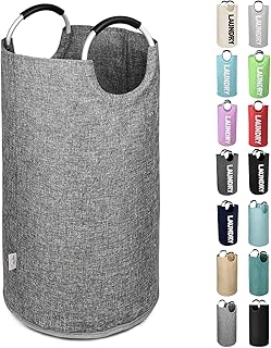 SweetMemo プレミアム 折りたたみ式 ランドリーバスケット 快適なハンドル付き 折りたたみ式 防水生地 持ち運び簡単 ポータブルトートバッグ 寮 クローゼット 収納 Large/82L グレー