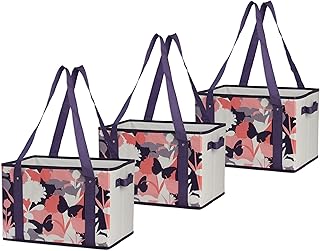 Earthwise デラックス 折りたたみ式 再利用可能なショッピングボックス 食料品バッグセット 強化底ストレージボックス ビン キューブ (3個セット) (蝶)