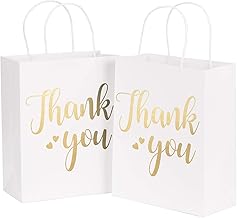 LaRibbons Mサイズ ギフトバッグ - 金箔 Thank You ホワイトペーパーバッグ ハンドル付き 結婚式 誕生日 ベビーシャワー パーティー記念品 - 12パック - 8インチ x 4インチ x 10インチ