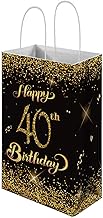 Happy 40歳の誕生日ギフトバッグ ハンドル付き 12パック ゴールドとブラック 40年 パーティー景品バッグ ゲスト用 ペーパートリートバッグ プレゼントラップ デコレーション