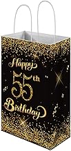 Happy 55歳の誕生日ギフトバッグ ハンドル付き 12パック ゴールドとブラック 55年パーティー景品バッグ ゲスト用 ペーパートリートバッグ プレゼントラップ デコレーション
