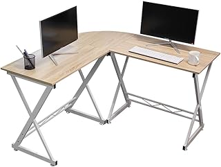 L字デスク パソコンデスク コーナーデスク ゲーミングデスク オフィスデスク ワークデスク アジャスター付き L字型 PCデスク 在宅勤務 テレワーク 省スペース (オーク)