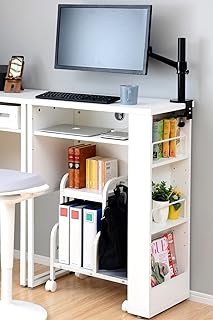 [山善] スタンディングデスク 頑丈(天板耐荷重60kg) 収納 2口コンセント 水分・汚れに強い(メラミン加工) アジャスター付き デスク キッチン 棚 幅75×奥行40×高さ100cm 組立品 ホワイト NOPE-H7540(WH) テレワーク