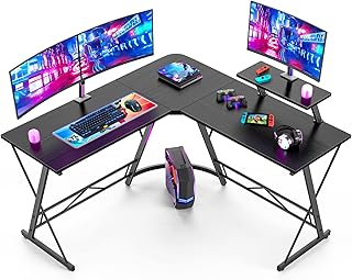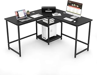 Kingdely l字デスク パソコンデスク ゲーミングデスク 収納ラック付き 幅120x奥行60cm アジャスター付き 省スペース 在宅勤務 ワークデスク 机 pcデスク 勉強机 コーナーデスク おしゃれ ウォールナット