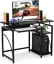 DEWEL パソコンデスク PCデスク デスク 机 ゲーミングデスク キーボードトレイ付き 収納ラック付 左右入れ替え対応 アジャスター付き 木製 組立簡単 在宅勤務 (2)