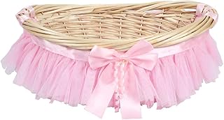KINGWILLOW 空 オーバル ウィッカー 織物 装飾バスケット イースターキャンディ バスケット クリスマスバスケット ギフト ウィローバスケット ウィッカー 収納 ワイン バスケット 卵 ギャザー ウェディング バスケット (ピンク)