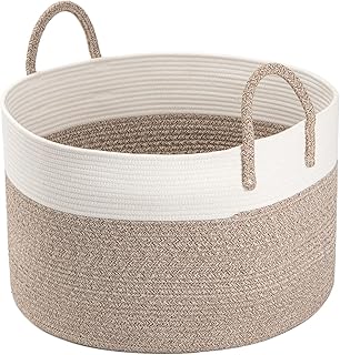 INDRESSME コットン ロープ バスケット | 特大 織り ハンパー バスケット ハンドル付き ナーサリ 保管 ベビー ランドリー バスケット ロープ 収納 ビン オーガナイザー トイ用 ピロー 20"D x 13"H XXXL サイズ メレ