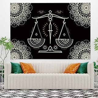 Leowefowa ヒッピー ブラック 曼荼羅 タペストリー 星座 壁掛け 天秤座 星座 壁タペストリー モダン ウォールアート ブランケット ホームデコレーション リビングルーム 寝室 寮用 59.1インチ x 35.4インチ