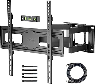 1homefurnit テレビ壁掛け金具 壁掛けテレビ金具 23-60インチフラット&カーブTV スイベルチルトエクステンド ダブルアームフルモーションTVウォールマウント 最大負荷45kg VESA 400x400mm HDMIケーブル スピリットレベル ケーブルタイ5本付き