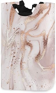 Qilmy ローズゴールド 抽象的 マーブル ランドリーハンパー ラージ 防水 ハンドル付き ランドリーバスケット 折りたたみ式 軽量 丈夫 ストア バスケット バスルーム 寝室