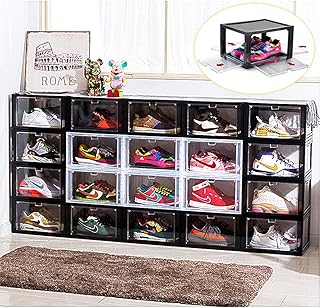 OTYTY シューズボックス スニーカーボックス 収納ボックス コレクションケース ディスプレイケース 収納ケース スニーカー収納 陳列棚 陳列ケース クリアボックス 衣装ケース フィギュア収納 省スペース プラスチック クリア フィギュア ふた付き おしゃれ クローセット 化粧品収納 四面開閉(ブラック, 6個)