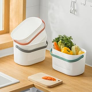 収納ボックス 収納バスケット プラスチック リビング収納 キッチン 食器棚 野菜 果物 フルーツ バスルーム 洗面台 洗面所 化粧品 コスメ タオル おもちゃ 雑貨 ハンドル付き 組み合わせ 大容量 水切りカゴ ピンク